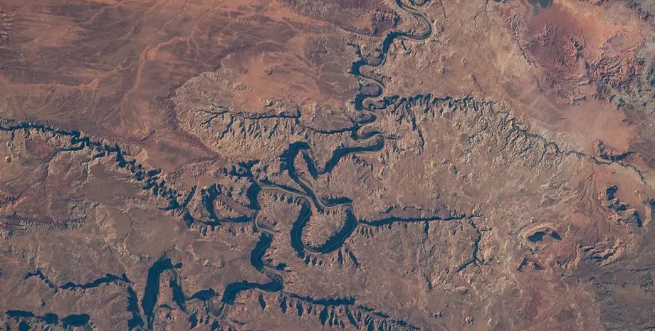 На этом снимке с МКС река Грин извивается по территории национального парка Каньонлендс | NASA